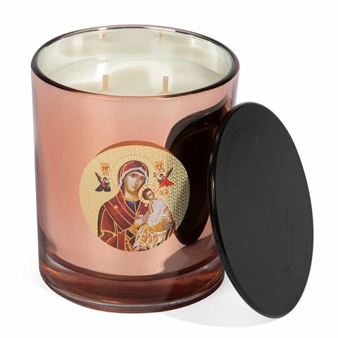 Presented in a rose gold-look glass jar, the Religious Icon Livani Rose Gold Candle is decorated with an iconic, angelic illustration. It’s the perfect Christening gift or symbolic, comforting present for friends or family. Scented with Livani – an enchanting aromatic blend of frankincense and myrrh with balsam, spice, patchouli and sandalwood, and is a traditional religious incense used in Greek orthodox homes and churches. It is also the scent of a certain manger in Bethlehem.