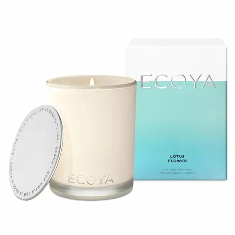 Each soy wax candle is carefully poured into a lovely, modern glass jar. Just lift the polished chrome lid and revel in the delicious scent of Lotus Flower – a delicate blend of Australian white lotus flower infused with deep shades of Pacific vanilla and patchouli.