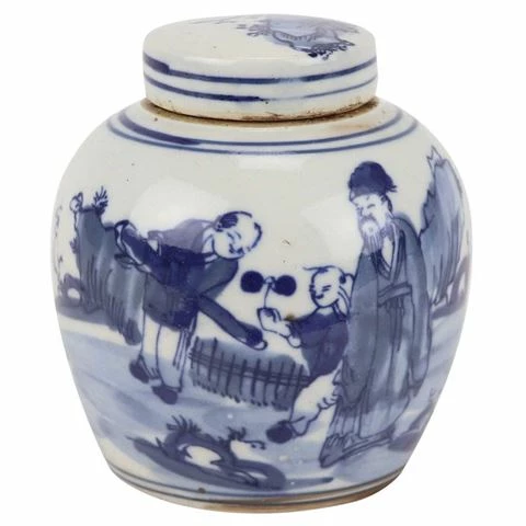 Florabelle’s new Shengling Small Round Lidded Jar is perfect for injecting some ancient artistic stylings into your home. Crafted from porcelain with a glazed finish, this decorative piece comes with a matching lid and is adorned with hand-painted human figures in deep blue, it has variations in color and details. This stunning ceramic jar with a lid will have a myriad of uses and it will fit anywhere. The antiquing process applied gives this beautiful jar a true antique look.