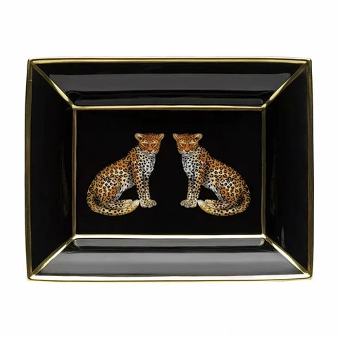 This stunning Twin Leopard English fine bone china Trinket Tray has been handcrafted by Halcyon Days’ artisans. Its design demands attention and is inspired by the jungle with twin leopards prowling across it. A perfect merging of aesthetics and practicality.